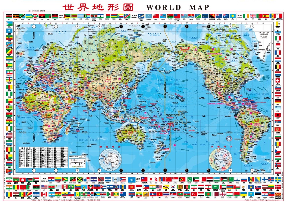 防水上光鋁掛版(上下鋁桿)世界地形全圖(107cm*77cm)