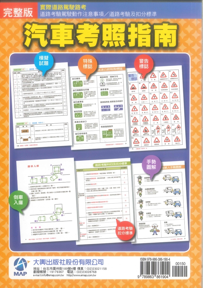 本書依據照交通部公路總局最新題庫編製,收錄 駕駛道德與交通安全常識及行車安全檢查與維護/ 交通法規/高、快速公路管制規則/肇事預防/ 急救常識、長隧道行車安全/鐵路平交道/ 考照模擬試題
